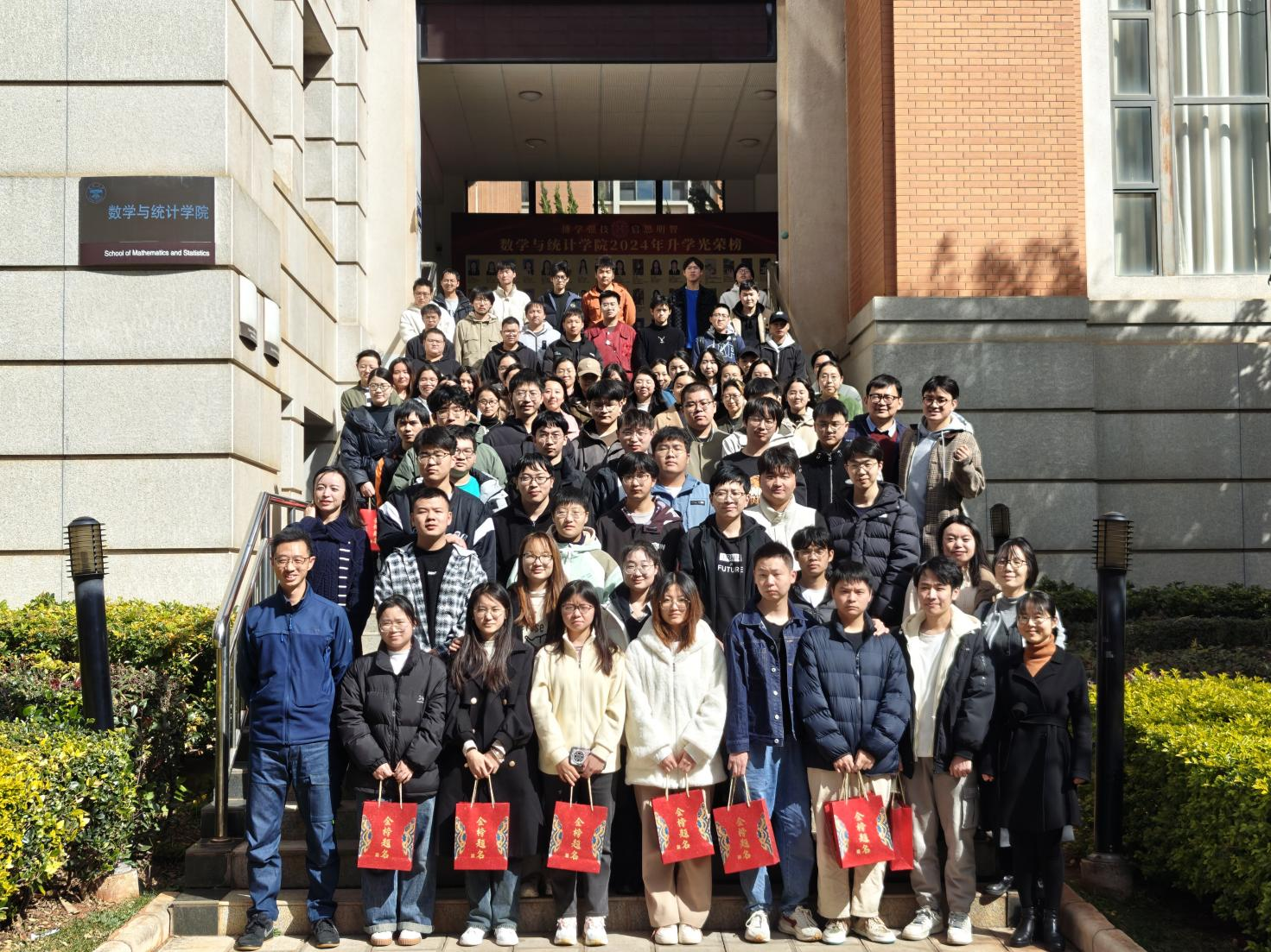 发放大礼包结束后,师生们一起合影留念。同学们拿着“金榜题名”大礼包聚在一起,凝聚出考研力量!