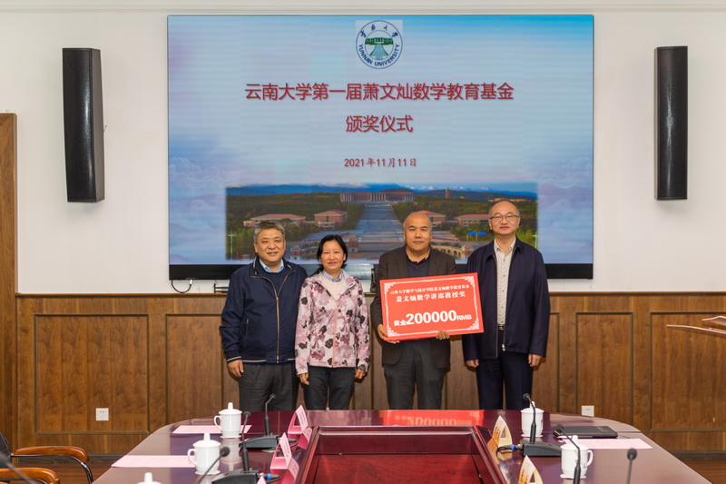 11月11日,bw必威西汉姆联官网第一届萧文灿数学教育基金颁奖仪式在bw必威西汉姆联官网呈贡校区举行。bw必威西汉姆联官网党委副书记李建宇,萧文灿数学基金捐赠人,公司人事处、学工部、员工总会秘书处负责人以及数学与统计公司党政领导和师生代表出席颁奖仪式。