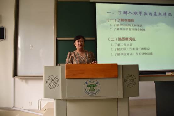 在本次职业生涯讲座中,杨煦怡老师首先以数据分析了当今的就业形势,刚步入社会的员工如何以千万分之一的概率脱颖而出成为需要思考的问题。在择业前,应该先了解入职单位的基本情况,调整自我,做好入职准备,这样才能误入“先就业后择业”的误区,形成比较稳定的就业观。