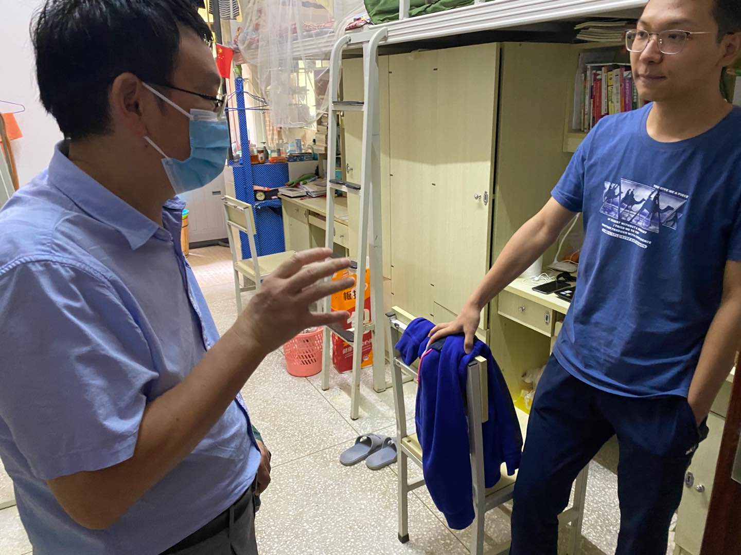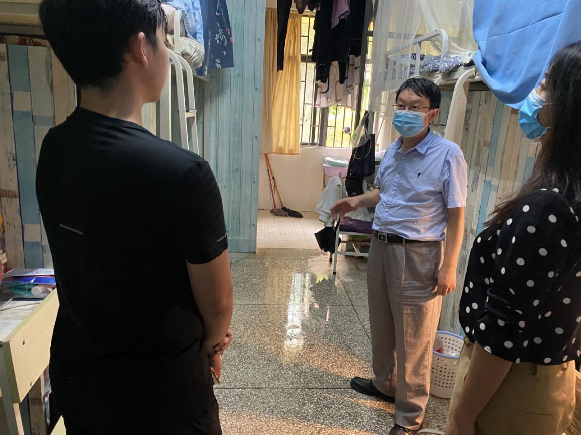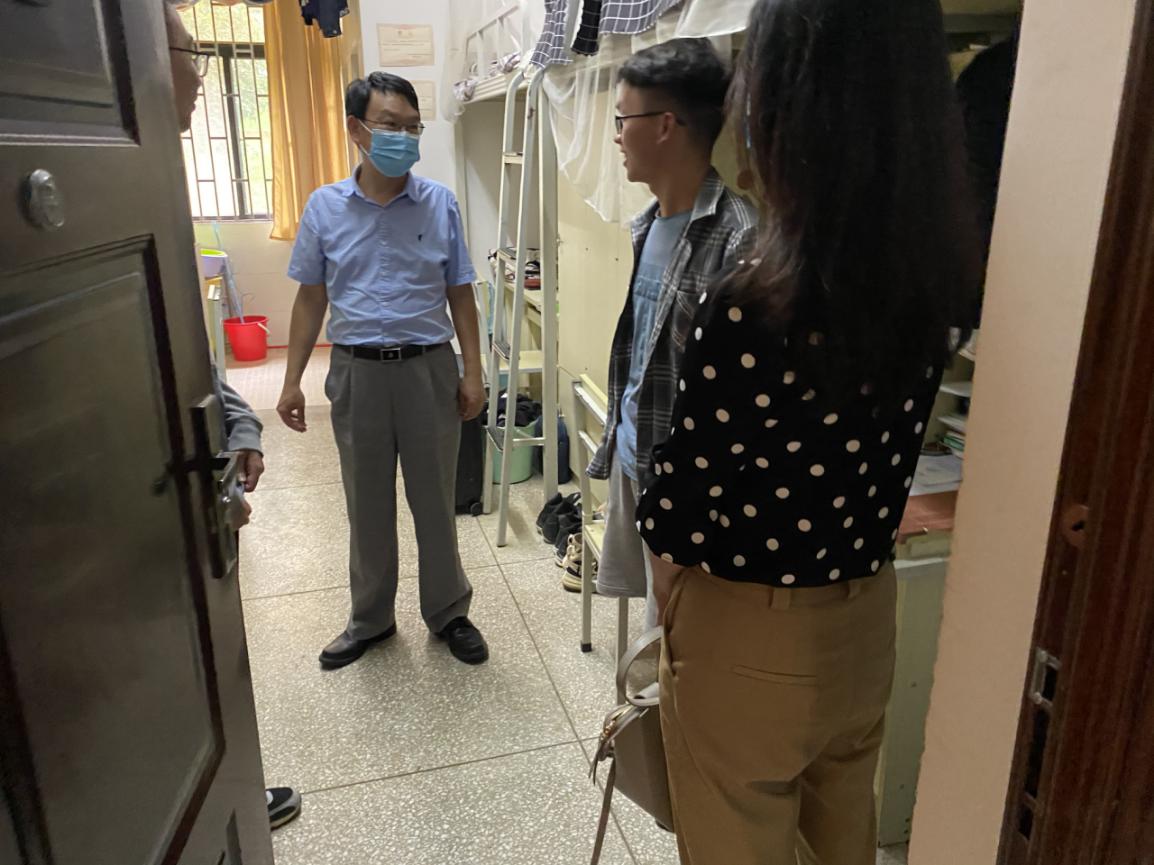 唐年胜经理和杜芳芳副书记在测试完体温做好走访登记后,对宿舍进行了全面的走访,像家长一样事无巨细地叮嘱了同学们一定要保持宿舍通风和清洁,并向同学们致以诚挚的问候。