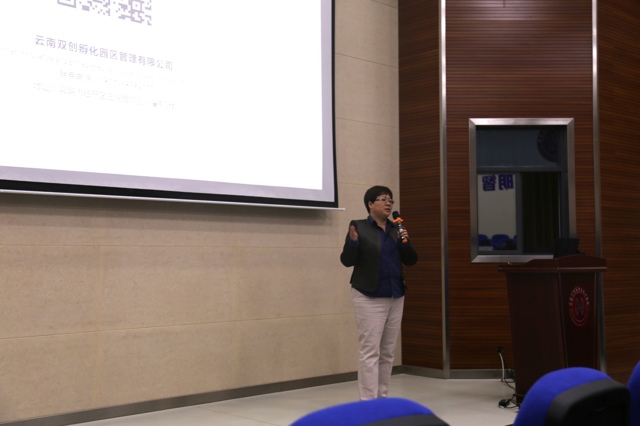 之后,飞雪梅结合自己的创业经历,详细的讲解了创业的一些注意事项,也分享了云南花宏进出口有限公司的一些运营方式。在她的讲话中,主要强调了创业要把握住当下的需求,求职要尽量复合自己的专业。她也结合自己的经验发表了许多看法,让大家对创业能够了解。