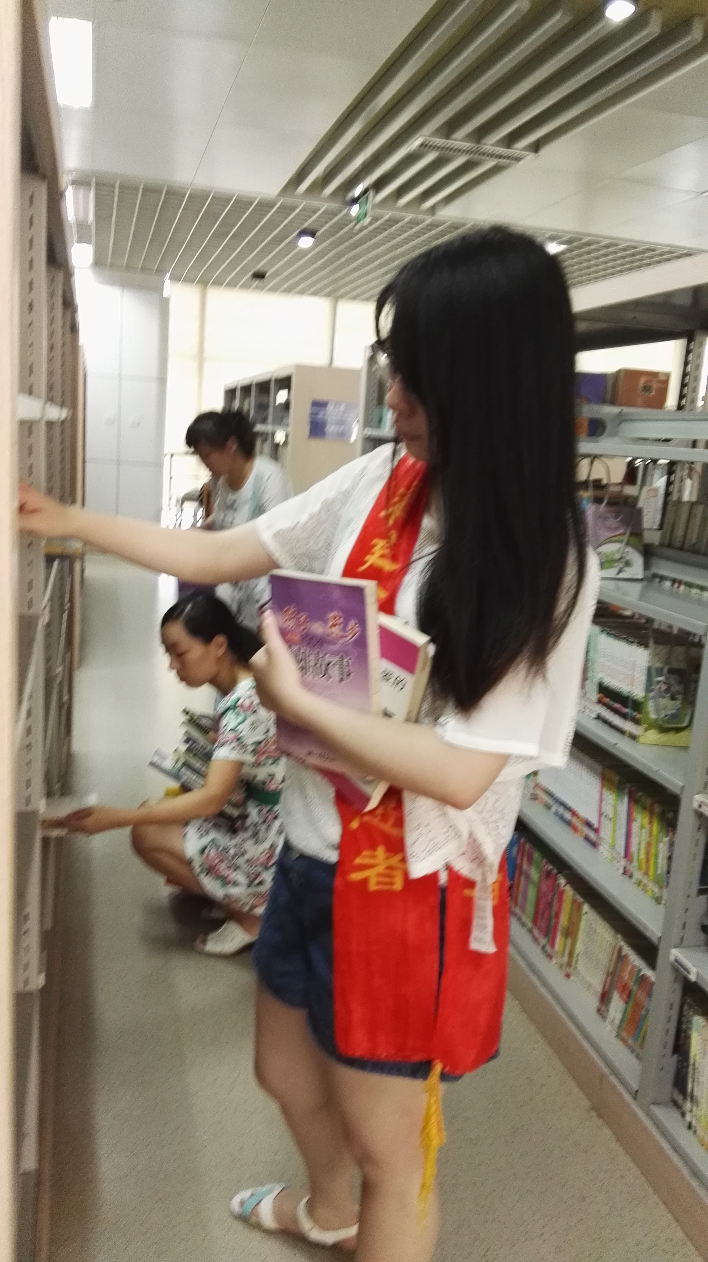与此同时,另一支小分队于7月18日-19日在福州市少儿图书馆开展了“沉默于书间,执着于奉献”为主题的志愿者活动。
