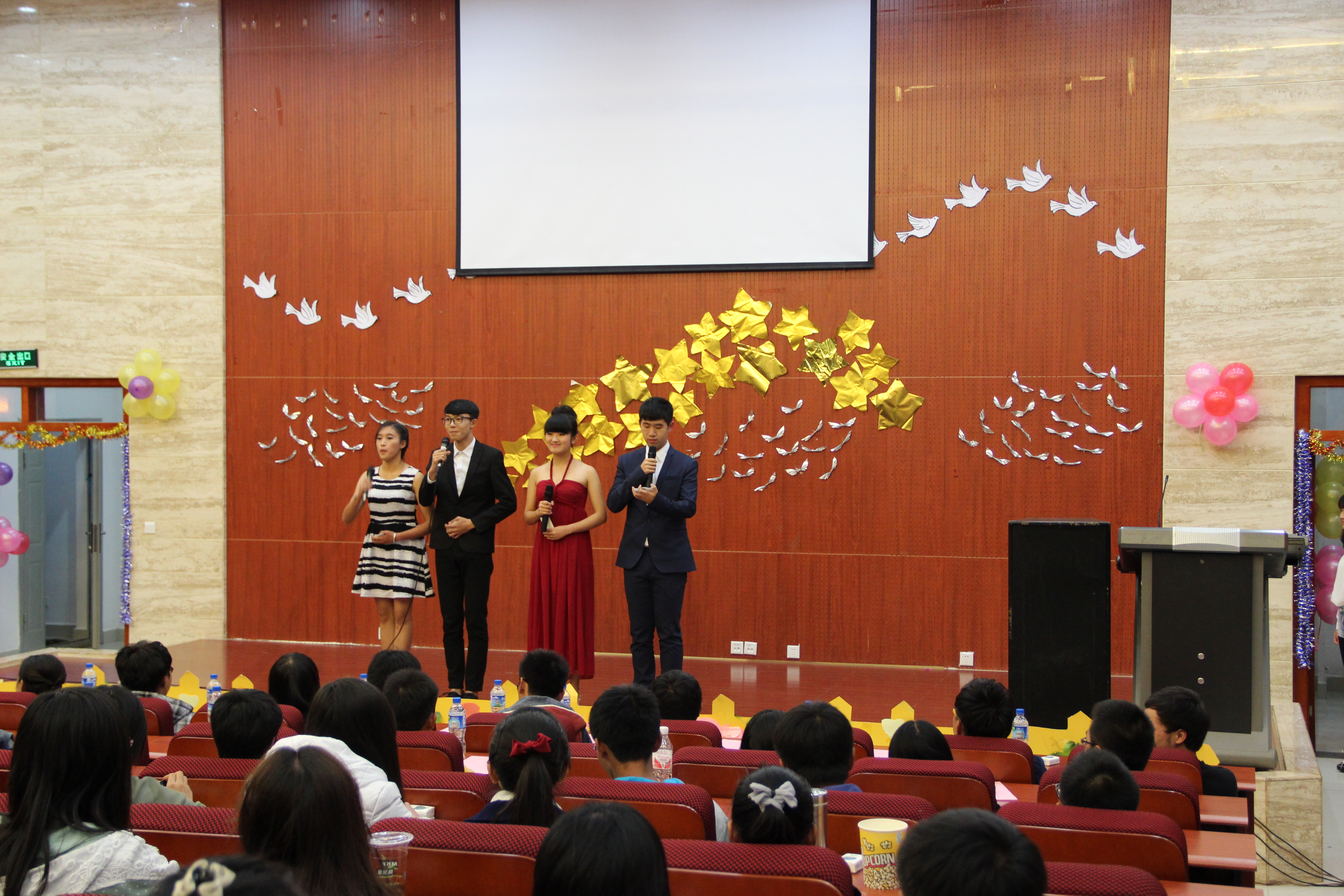 不得不提的是无节操的大冒险游戏环节,参与的同学抽到了各类题目,真真是最有“节操”的环节,没完成的可是要当众狂饮一瓶啤酒。欢快的游戏之后,在熟悉的旋律里,职继公司的弹唱《平凡之路》缓缓响起。舞蹈《Beggin》也博得阵阵喝彩,无论看多少遍的《玉生烟》依然是美轮美奂。《歌曲串烧》也同样魅力无限,在欢快的气氛里城建公司动人的《向快乐出发》结束了本次联谊晚会。