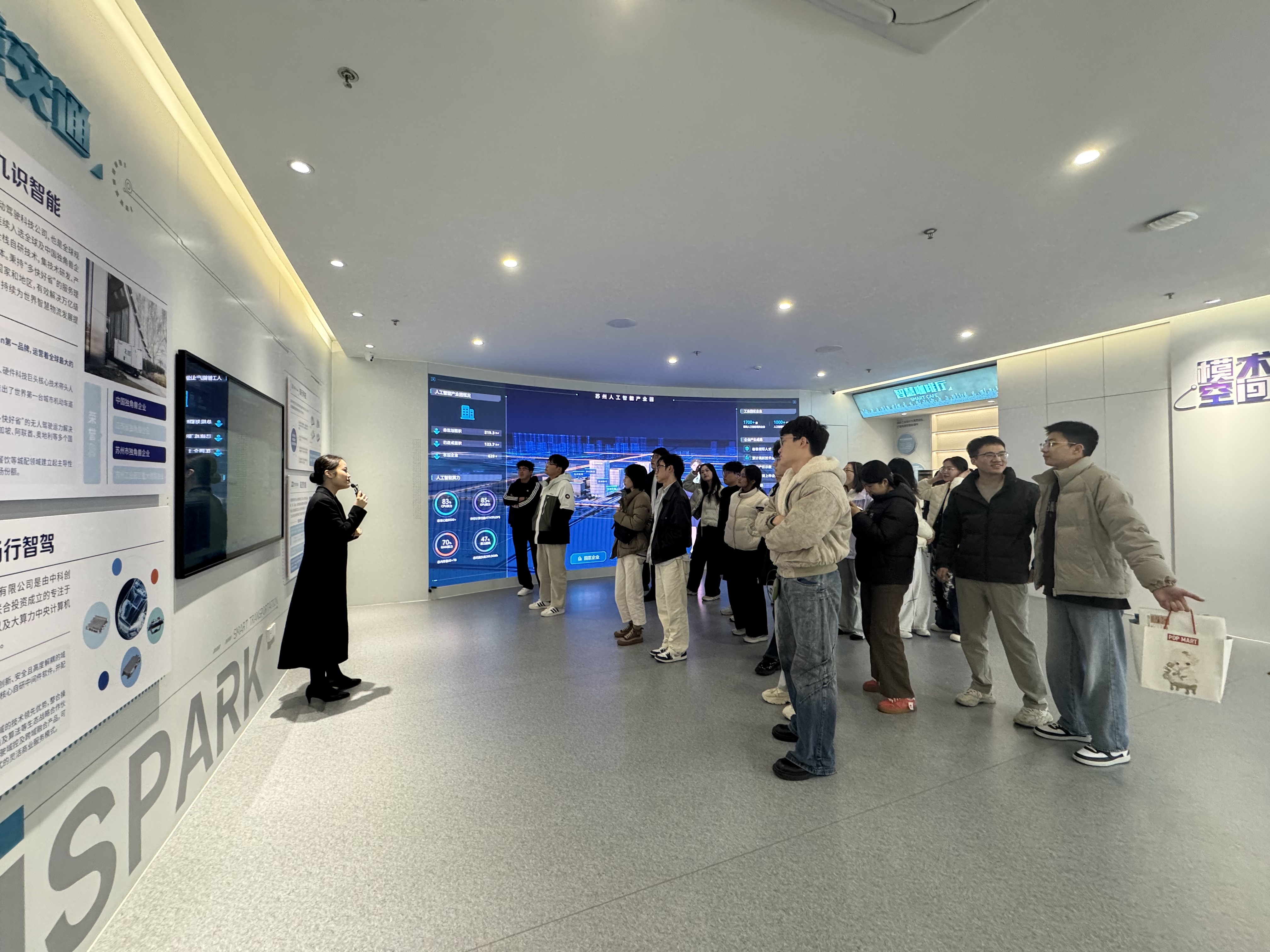 12月2日,公司师生走进江苏北人智能制造公司,重点了解其“智能制造+AI”模式下的数据质控体系,明确数据分析在产品研发、运营优化中的核心作用;随后参访苏州人工智能产业园“模术空间”,工业质检、智慧城市等AI落地成果,激发学子探索“数学+AI”跨域创新的思考。